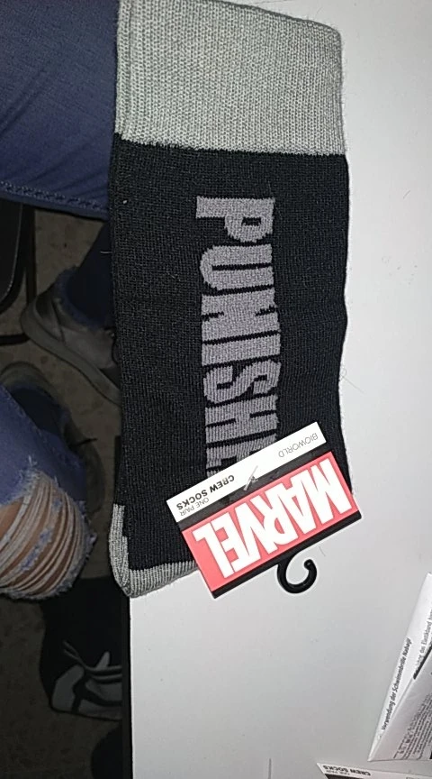 The socks were in perfect state, the fabric is very good, QUALITY, are not socks "fat" But either are fine, are normal is… And the drawing and the letters nicely too. Recommend!!